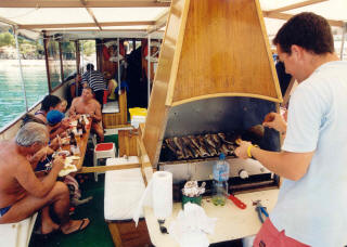 von 42 Personen. Wir organisieren tägliche Ausflüge mit Picknick (Mittagessen), das Fisch oder gegrilltes Fleisch, Beilage und Salat enthält. Essen wird an Bord vor den Gästen vorbereitet! Transfer von Ihrer Wohnung bis zum Schiff und zurück ist im Preis inbegriffen. |