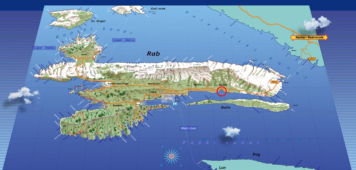 Island Rab is linked to the mainland with good road and ferryboat connections.